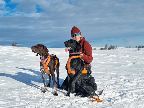 Jag jagar jag mestadels fågel i skog och på fjäll. De agerar också apportörer när vi jagar ringduva och gör trafikeftersök på rådjur och på sårskjutet vilt.