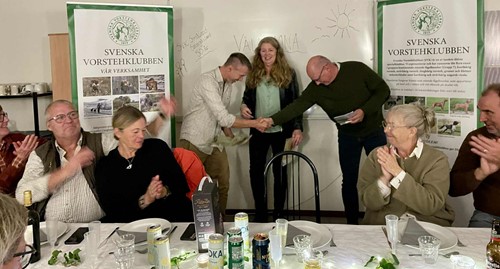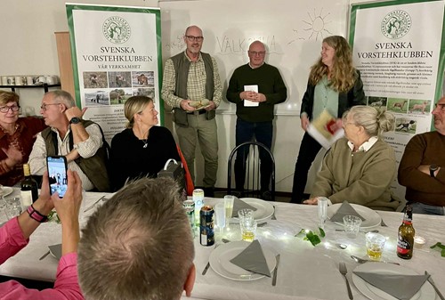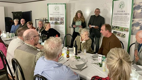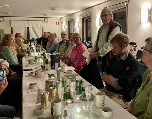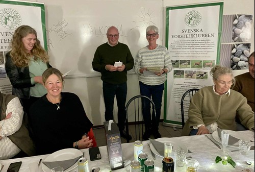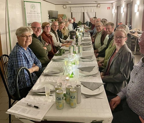 Prisutdelning blev sedan på kvällens jaktprovsmiddag där vi även firade att vår lokalavdelning fyllde 50 år. Till middagen hade några medlemmar som varit med från start bjudits in extra. Tyvärr fick någon lämna återbud pga. vädrets makter. Till slut blev vi 27 stycken som avnjöt en god 3-rätters middag lokalproducerad från Öland. Erling Bengtsson berättade om klubbens historia och hur allt startade.