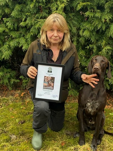 SVK Småland-Östergötlands vandringspris Litografi 4 till bästa ÖKL hund i avdelningen: Viltjägarens Dimla, Johanna Olsson