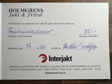 4:e pris, värde 1 700 kr. Presentkort, keps & dummie